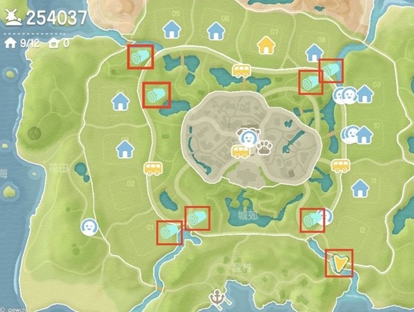 《心动小镇》城镇外围8颗巨树位置