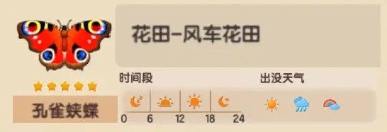 《心动小镇》孔雀蛱蝶捕捉位置说明 2024-08-01 14:30:24 大中小 《心动小镇》中各种昆虫的出没时间和地点有所不同,想要知道孔雀蛱蝶在哪里能够捕捉的玩家请看下面“吱大王”带来的《心动小镇》孔雀蛱蝶捕捉位置说明,希望能够帮助大家。 出现时间及天气如下: 全文查看