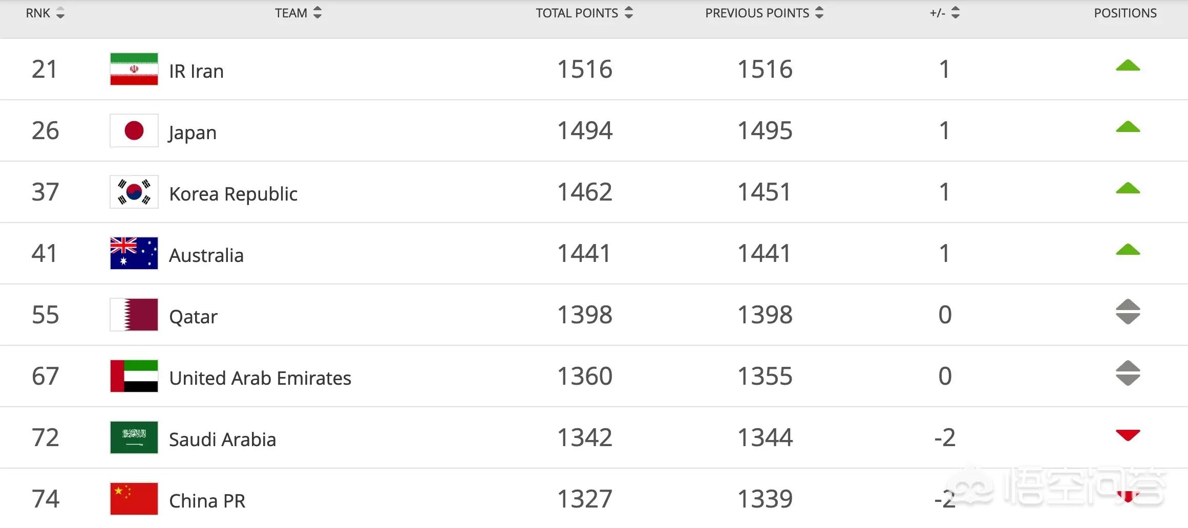 FIFA公布新一期男足国家队排名,这也是世界杯前更新的最后一期排名。
