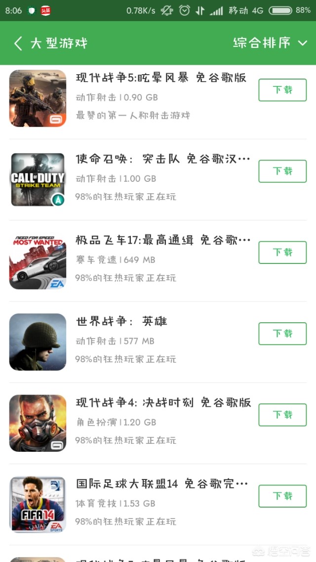 拇指玩里大多是战争题材的游戏。现代战争系列,使命召唤系列。辐射岛,辐射之城等。