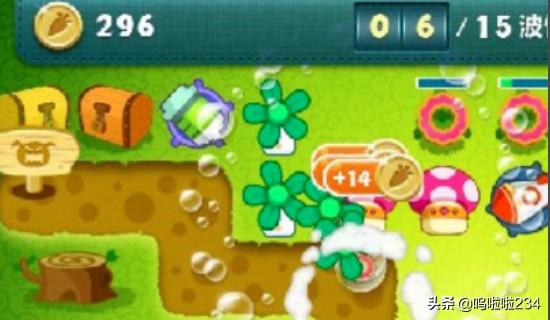通过风扇炮塔清理道具得到了许多深海蘑菇炮塔。在萝卜处建造一个星星炮塔然后开始清理地图右侧的道具过关。