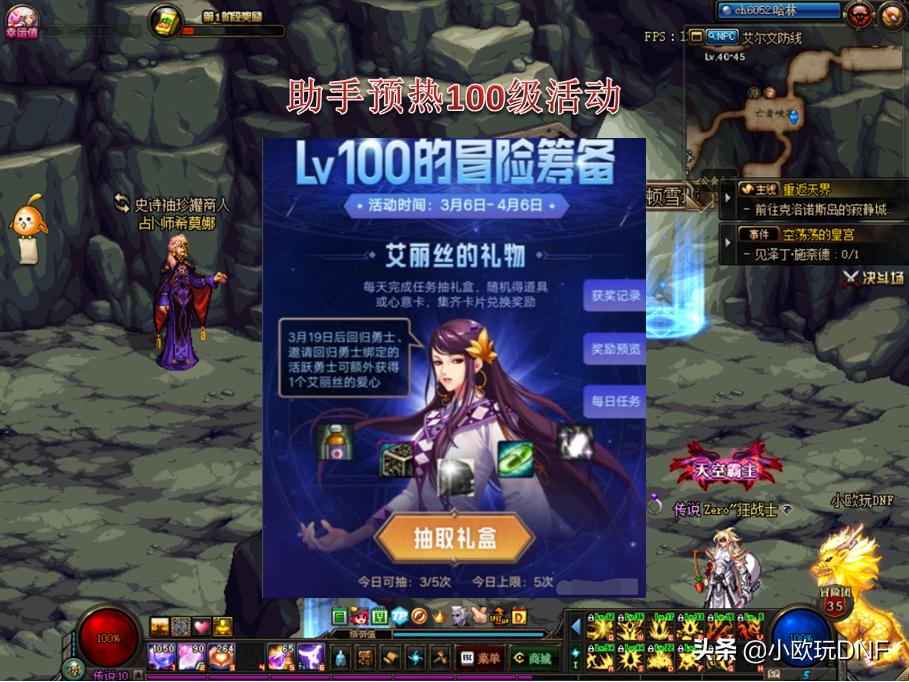 DNF距离100级版本还要不到半个月的时间,预热100级版本的活动和爆料也是逐渐增多,让玩家们应接不暇,原本只有客户端上面有预热活动,现在助手上面也增加了预热100级活动“爱丽丝的礼物”,我们一起来看看这个活动吧!
