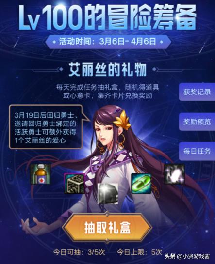 有一说一,此次助手的预热100级活动是非常值得参与的,不仅可以获得+8装备增幅卷,还可以获得100个时间引导石,并且抽卡还有几率获得经验胶囊和疲劳药。