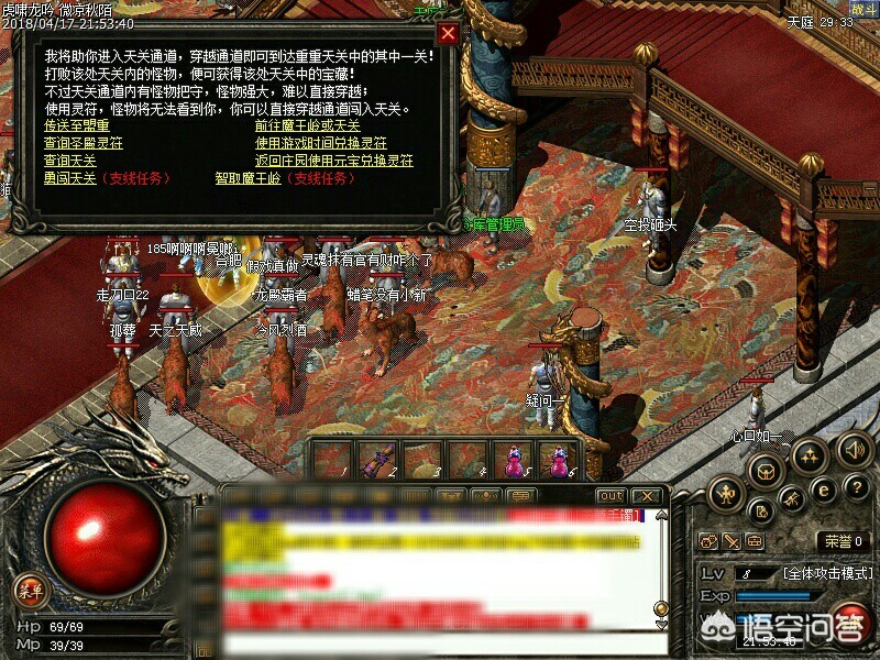 人气嘛~人来人往的,也算热闹。如果要回归,小陌觉得还是值得一玩的。但也没必要投入太多了,有时有空就推开大门进去转转,去以前通宵刷怪的地方逛下,去看看赤月老魔,去跟牛魔王叙叙旧,去沃玛教主那挑战下,去祖玛阁玩下迷宫,去死亡山谷那会下触龙神,去石墓烤下白猪,去兽人墓穴那刷个骷髅精灵,累了就退出吧~