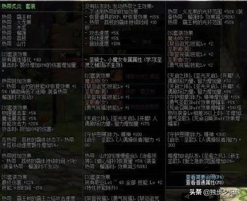 5特罗皮卡套。这一套装备最有喜感,为什么被称为水果套,一看装备的名称便知,5件史诗的名称分别用了5个水果的名字,被玩家形象地称为“水果套”,而这套装备受人关注的主要原因是,水果三件套是所有防具三件套中最强的。