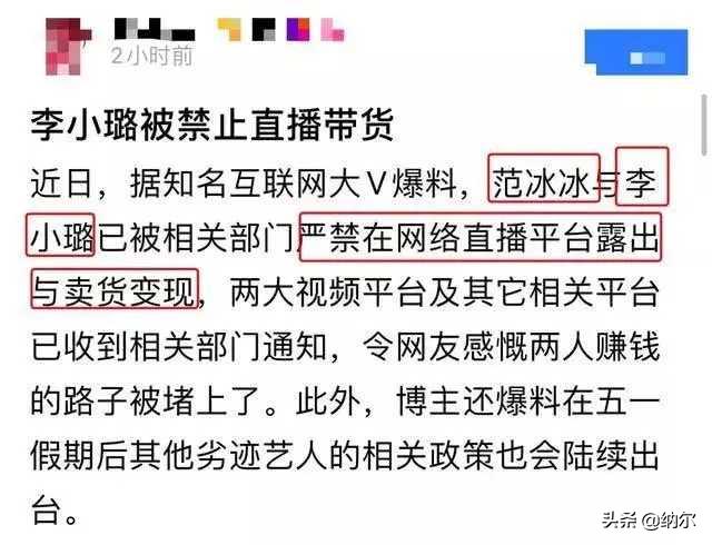 网报,范冰冰,李小璐禁止直播带货?