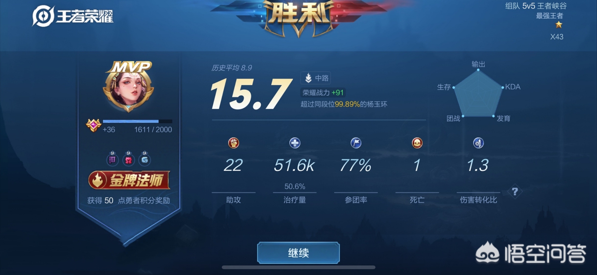 具体打法:一级对面清兵就a人就好,有辅助有机会打死,之后清完线就打支援,没事就消耗一下对面,这也是杨玉环吃辅助的原因,对线期就这么重复。