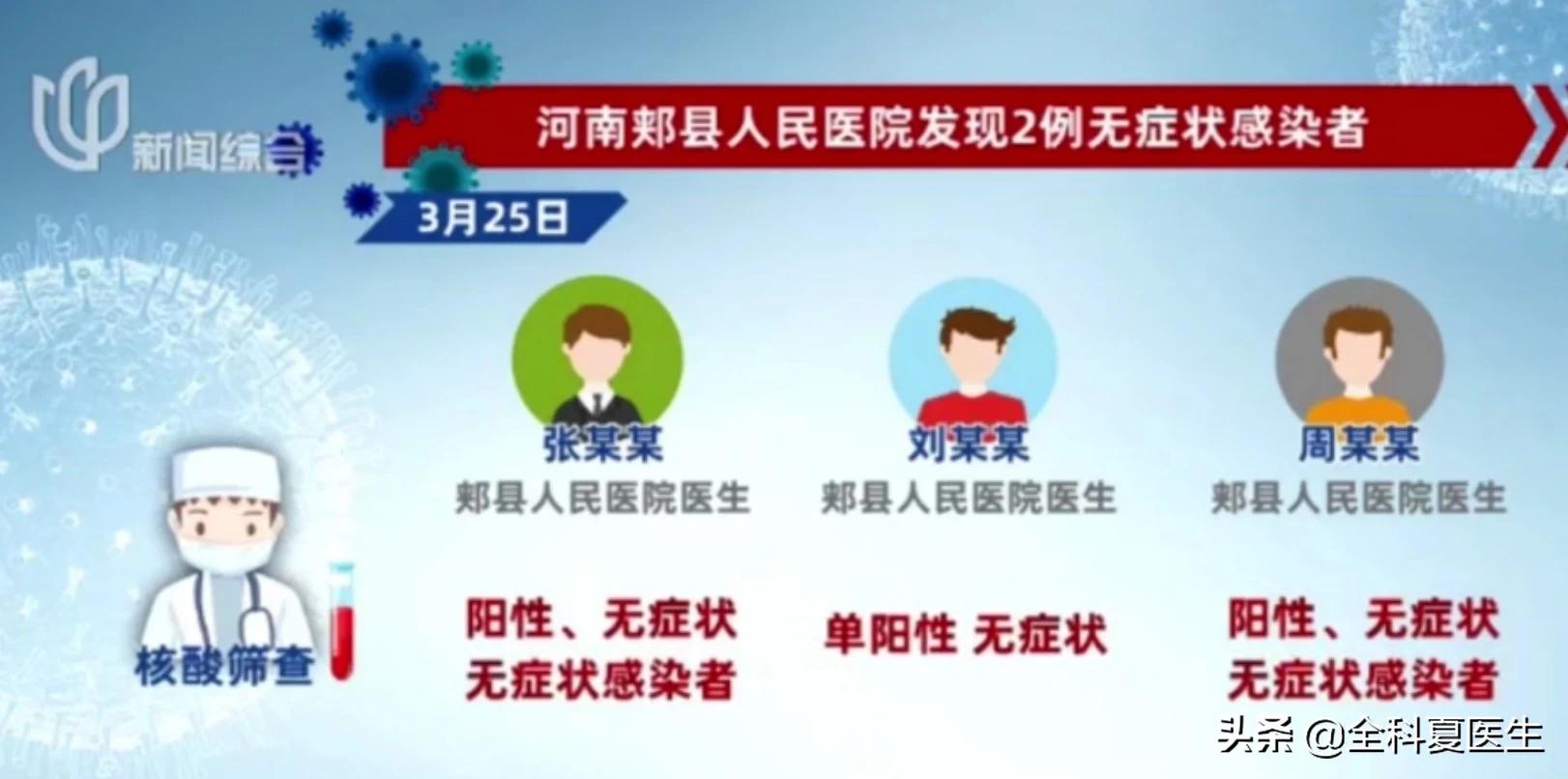 那么这次河南本土病例的出现,给我们一个很重要的警示就是,之前我们医生一直在强调的无症状感染者是一个可能性的传染源,并不是一句空话,而且最重要的是,大家还要记住的一点就是:被无症状感染者感染的人,他并不一定也是一个无症状感染者,而是有可能发病的,这是有个体差异性的,出现轻中重都我有可能,这点值得大家要特别注意的。