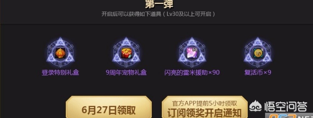 登录9周年畅想大礼第一弹有登录特别礼盒,和9周年宠物,宠物属性就算了,这里的亮点是登录特别礼盒是80级以下跨界石(只能武器或防具)或者是85史诗碎片99个。