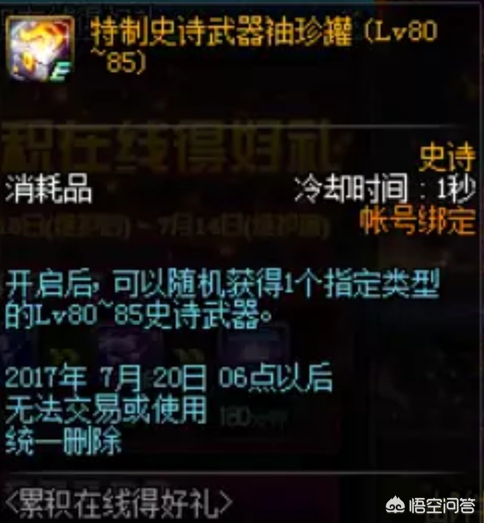 5、还有站街活动20天送史诗武器袖珍罐80-85的武器。