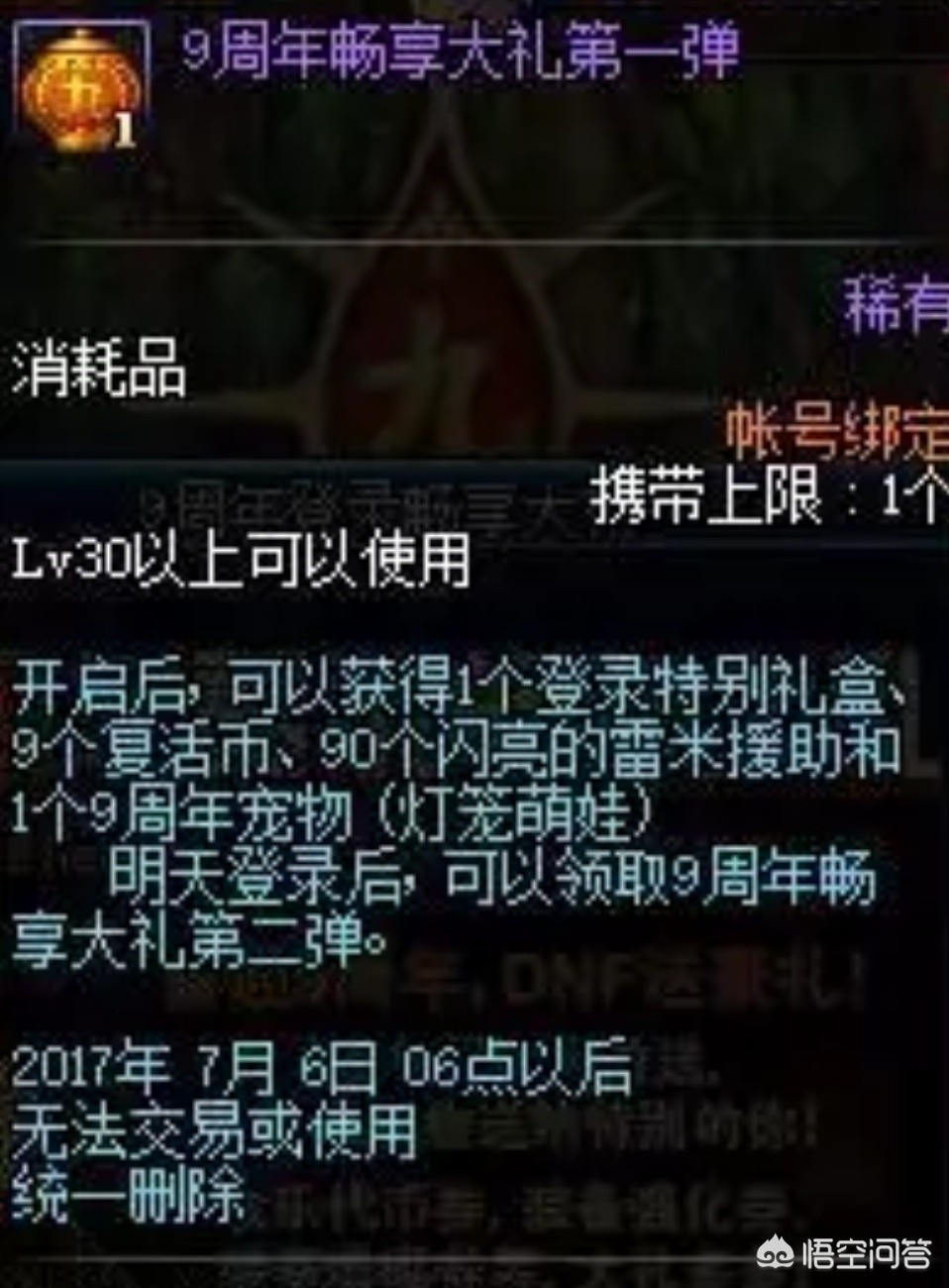 今天的DNF周年庆是一个特别的周年庆,是十周年大庆祝,肯定今年的周年庆特别不一样,不一样一定会从奖励里体现出来,我们先回顾下九周年庆的奖励: