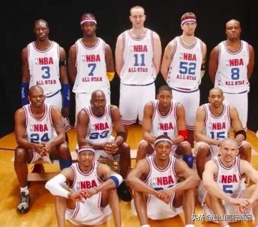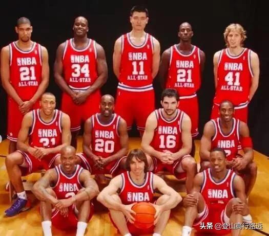 姚明也在那年的全明星赛闪亮登场,大姚第一次还是显得稍微紧张,我们可以看到科比还在给紧张的大姚捏肩,嘴里说着:relax !relax!可以看出曼巴对姚明这个弟弟还是多加关照的。个人心中最好看的永远属于2003年全明星赛!附上全家福照片!