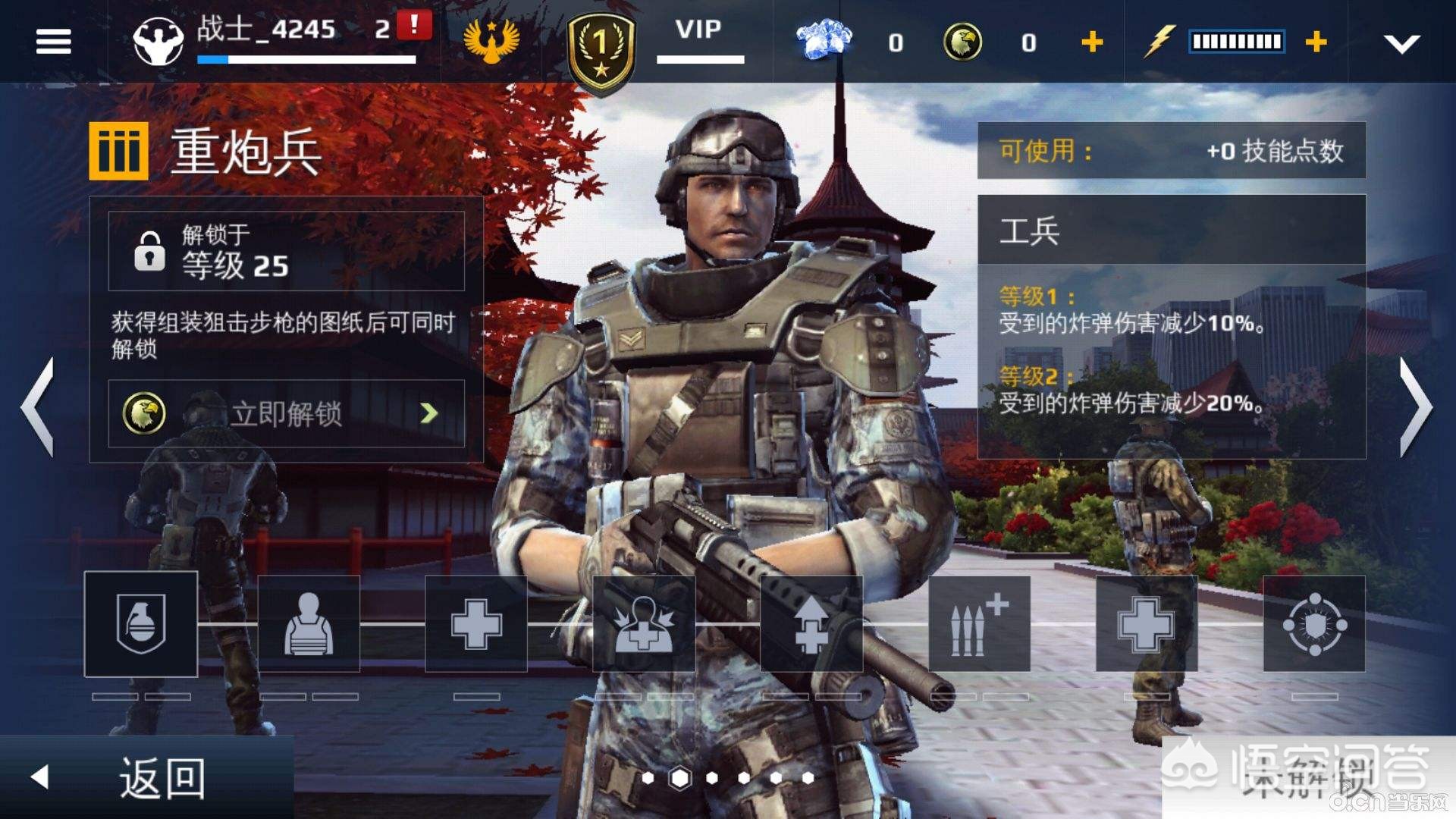 游戏中,人物可以变成不同兵种,每个兵种都有自己特定的技能。他们分别是突击兵,重炮兵,侦察兵,狙击兵,支援兵。
