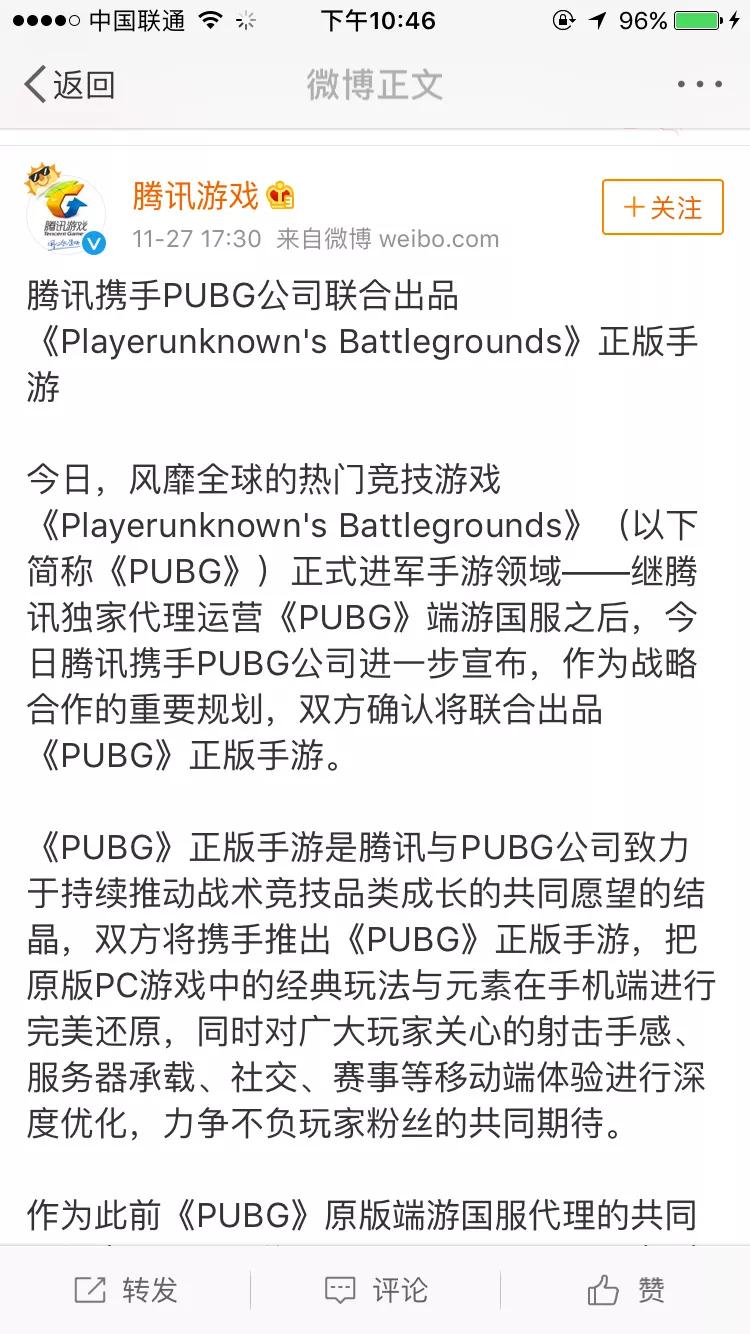 但是腾讯粑粑果然不是吃素的,眼看光荣要凉,马上反绕一波推出正版PUBG手游,枪口直指正是火热的各大吃鸡手游。