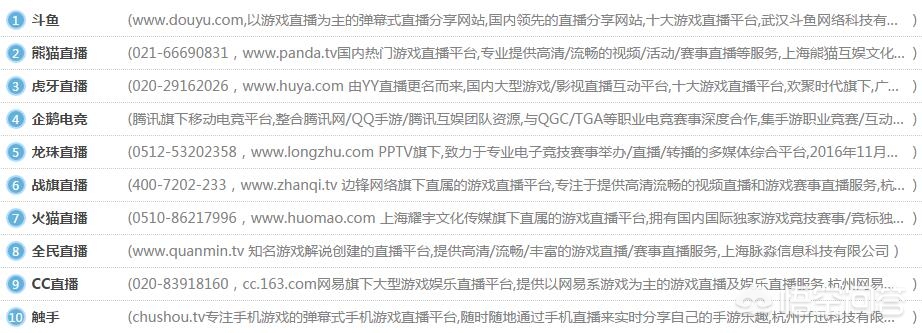一、游戏直播:以下是2017年排名前十的游戏直播平台: