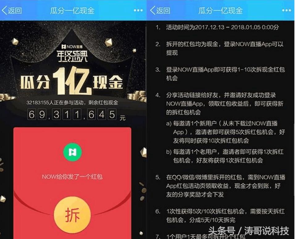 而对在那抢腾讯红包,在NOW直播分享链接给好友下载,才能得到红包,而在NOW直播满10元可提现,不过对于这个红包小编觉得都无语,实在少的可怜,而领取方式还特别复杂。