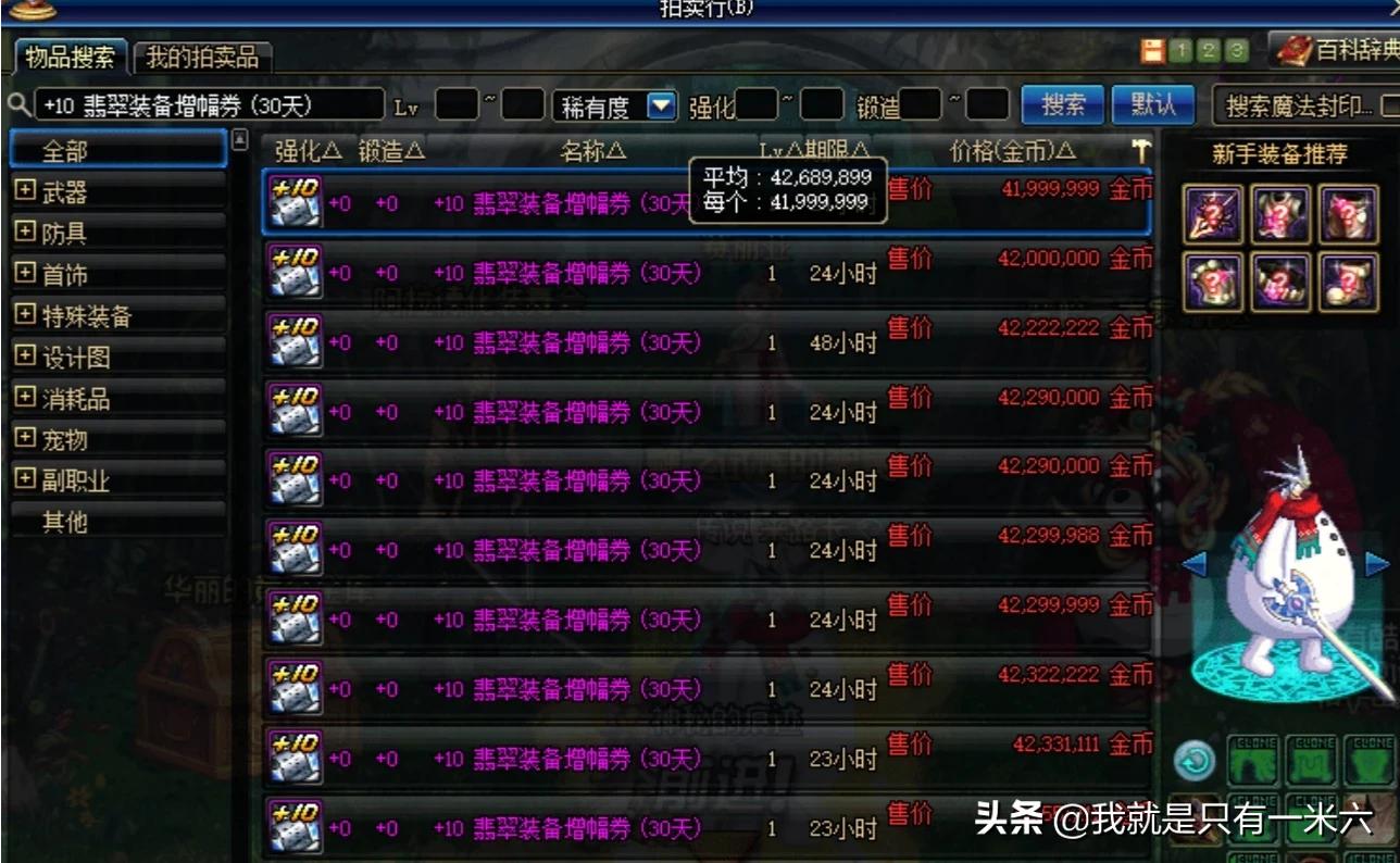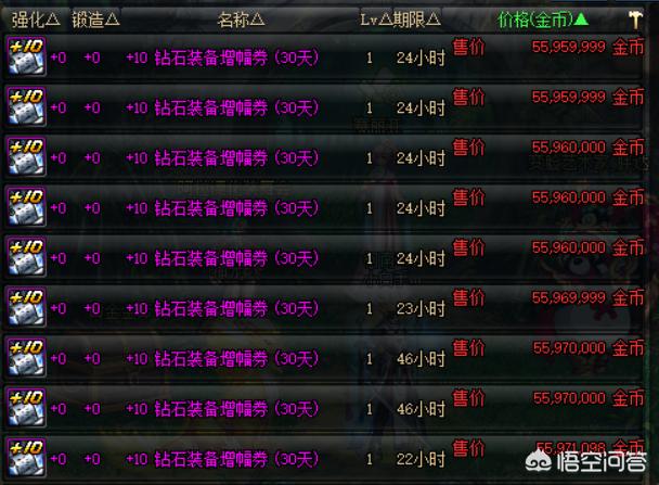 现在+10钻石增幅券卖个6000万,而+11钻石增幅券就要卖3亿金币了,相当于5张+10增幅券了。平民玩家只需要花3亿金币就可以完成防具全套增幅10了,都可以混团本的。