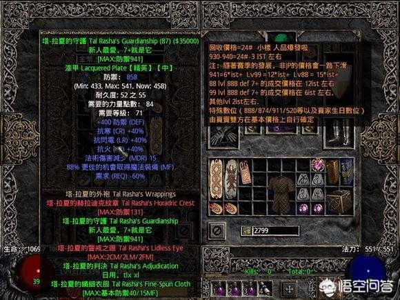 结论:暗黑2所有装备(暗金,绿色套装,亮金,蓝色,白色,灰色)、符文、宝石、珠宝、板子都可以在地狱85级场景里,老尼、巴尔掉落,其中就包括塔拉夏套装(法师套装)。