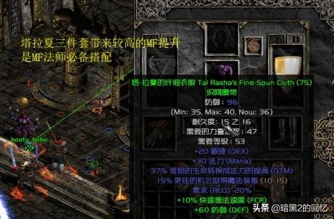 其实很多人错误的理解了MF的真正含义,MF是magic found的缩写,就是魔法物品掉落率,MF数值越高,越容易出现更高档次的物品,但并不影响物品的基础品质(没法保证是哪一种颜色)。举例如MF400+只是让魔法物品掉落率增加,而不能说MF值高就一定比MF值的人掉的装备好。