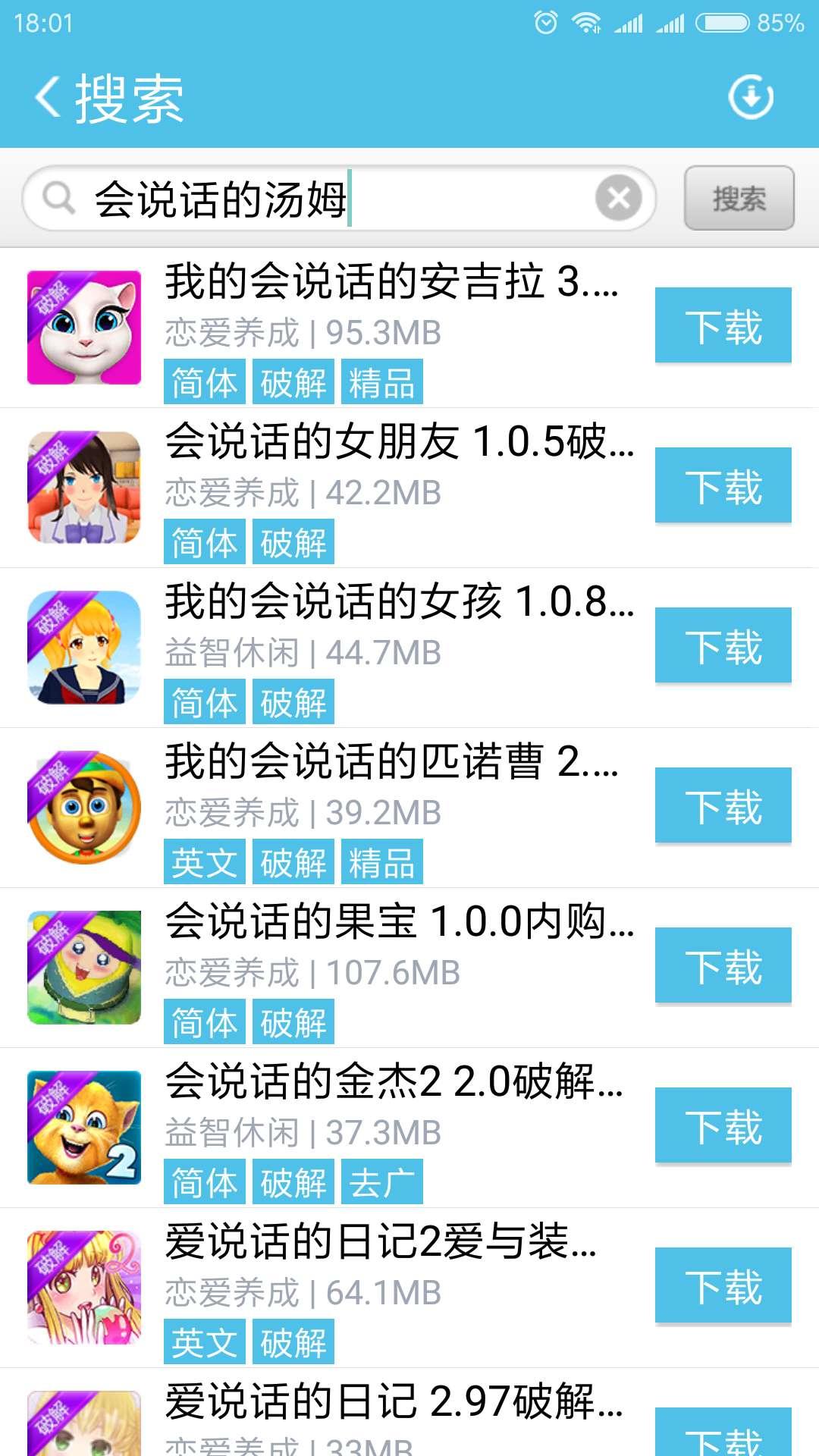 安卓的话就方便多了,葫芦侠和7723游戏盒都有破解版,奇怪的是爱吾游戏竟然没有汤姆猫破解版……