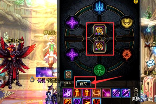 3,装备好两个护石后,点击“符文”,如图所示: