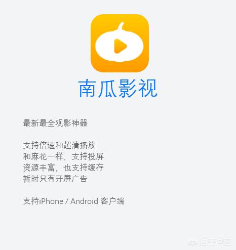 拥有了南瓜就再也不担心没有新剧看不了的,整体操作简单,使用流畅!目前只有开屏广告,最关键是支持下载缓存,这个在目前的影视APP中真的是难能可贵了!同样也支持投屏,不过有要求限制,整体来说邀请限制不影响看任何视频,还算OK~~