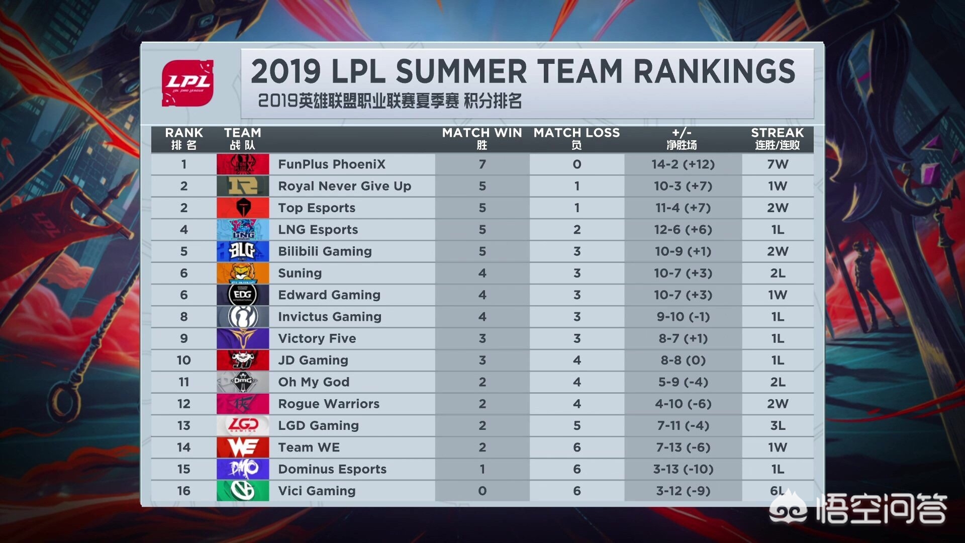 lpl夏季赛积分榜是怎么排名的