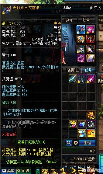 武器的话给这把让无数人折腰的无影剑,当初的小无影只有两种方式获得,一个是深渊爆出,当时的南门和绿都是爆的最多的地方。另外一种就是用灵魂在歌兰蒂斯那里去兑换,分解多个SS来兑换一个无影。当初很多人都去卡SS,这里的卡SS就是故意分解SS装备,然后去投诉说自己被盗号,系统会返还你SS。例如需要650个狗眼,你只需要分解一半武器,然后找回再分解,当然也有失败的 - -