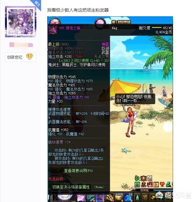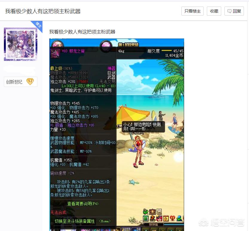 首先我们知道在DNF早期版本中,领主神器可谓是家喻户晓了,不知道有多少老玩家为它着迷,日以继日去刷领主神器。当时比较出名的装备有蝴蝶刀,冰龙太刀,冰河裂谷剑,电锯,薄雾之刃等。而这位玩家所晒出的领主神器是邪龙之脊,其属性亮点为攻击时有2%的几率召唤出三条邪龙的铁锁攻击敌人,被攻击时有5%的几率召唤出一条邪龙的铁锁攻击敌人。用这件装备刷图触发特效的概率还是很高的。