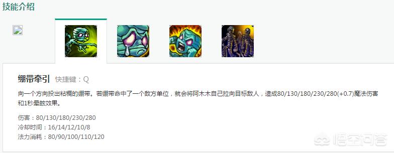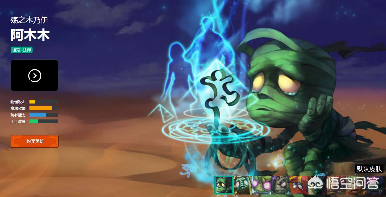 首先我们来分析一下阿木木这个英雄。阿木木全称殇之木乃伊。官方定位是法坦,它的魔法攻击和防御能力都较为出色,而且操作非常简单,新手上手是没有什么难度的。