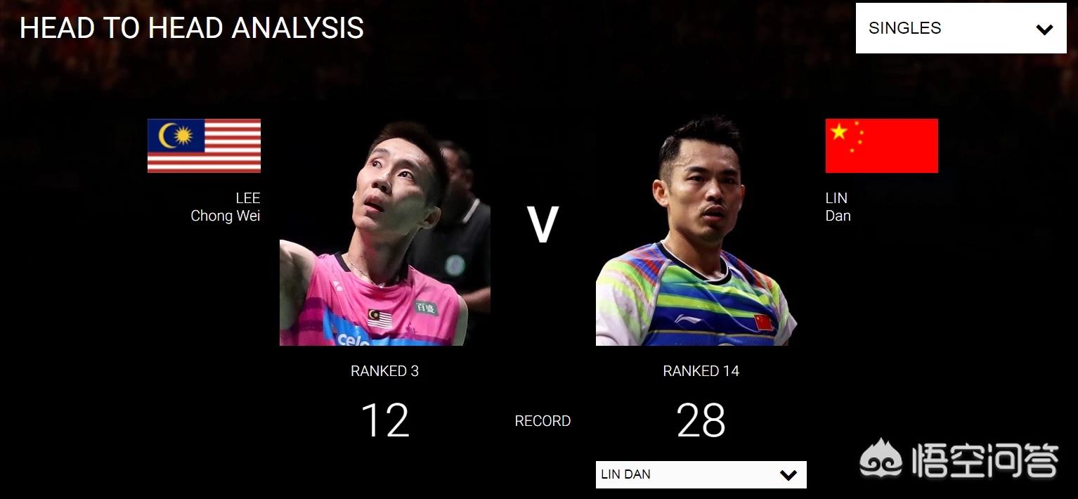 据国际羽联官网显示,李宗伟职业生涯共参加单打比赛848场,取得713场胜利,胜率达到84%,而相比之下,同时代的林丹只参加了733场,赢了633场,胜率86%。