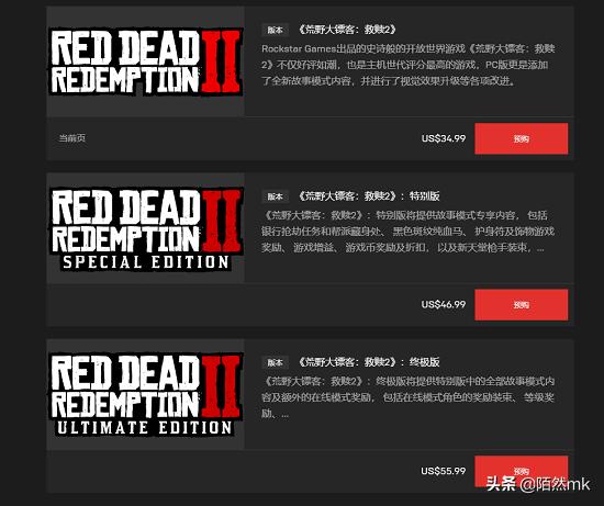 11月5号是《荒野大镖客2》PC正式发售的日子,此次发售仅有R星平台及epic两个平台,玩家可以在两个平台预购。在R星平台预购游戏可免费升级到特别版并且附赠两款游戏,但价格比较贵,标准版也要400多,终极版更是要600多,不是很划算。