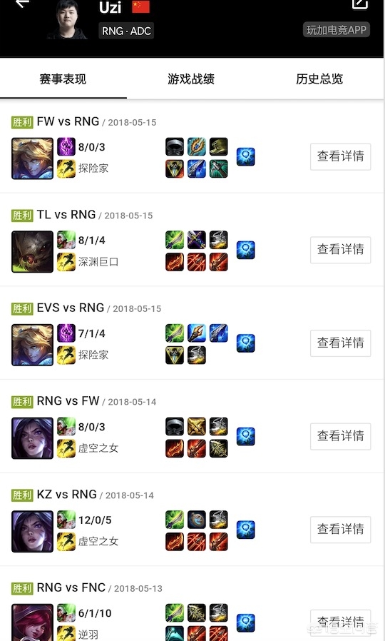 从5月13日RNG的第二场比赛开始,RNG开始了连胜之路。此后的六场比赛,Uzi只死了三次,KDA高得吓人。此外每场比赛,Uzi的输出都远超队友,一个人扛起了RNG的输出大旗,多次超神,让这个Msi的比赛变得不像职业联赛。特别是卡莎这个英雄,5月14日Uzi拿到两把卡莎,两把超神,打得FW和KZ怀疑人生。而这个卡莎在别人的手里又打不出Uzi这么强的效果,这就是召唤师的差距。