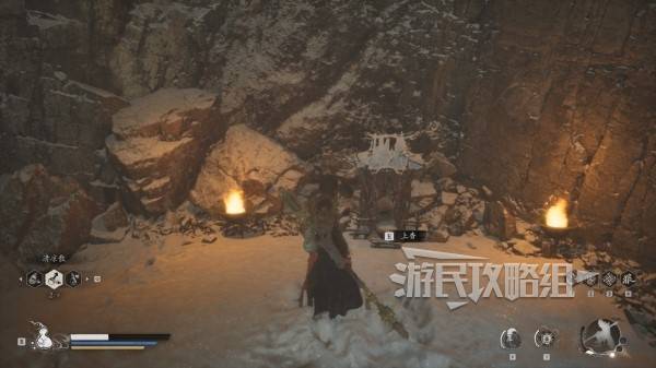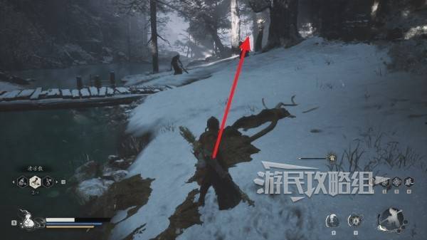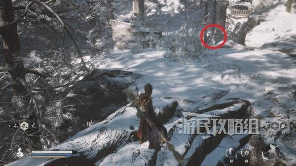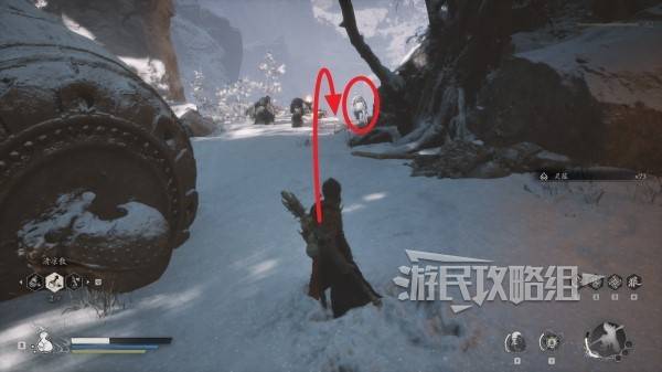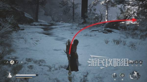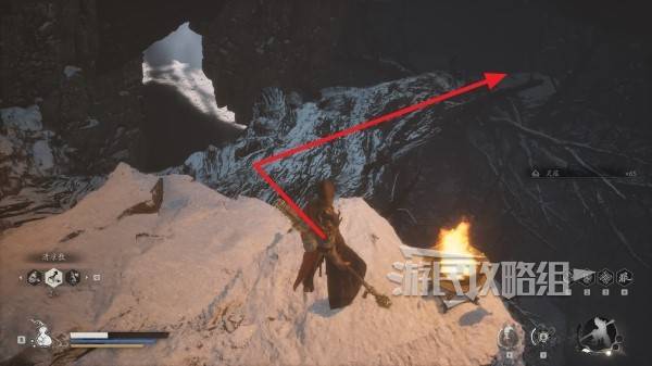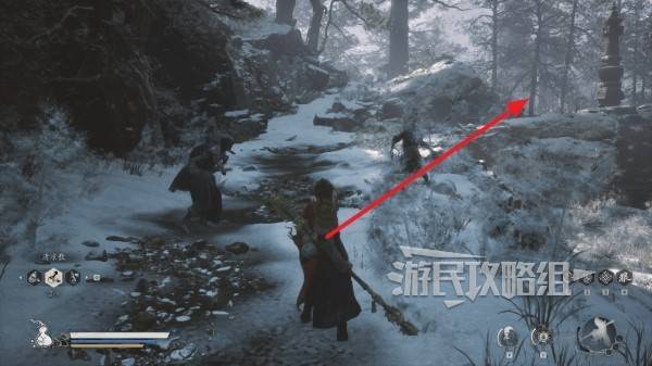 走到头可以看到悬崖,悬崖边有3个雪僵尸,其中2个是雕像,1个是真的,击败敌人之后从悬崖往下跳。