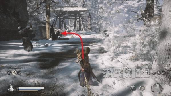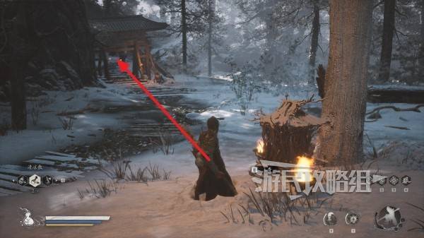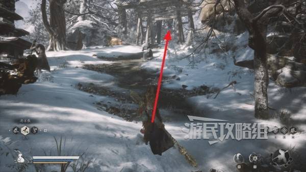 进入大门之后,沿着唯一的路往前走到庙门前的楼梯旁边,击败敌人就能看到他。