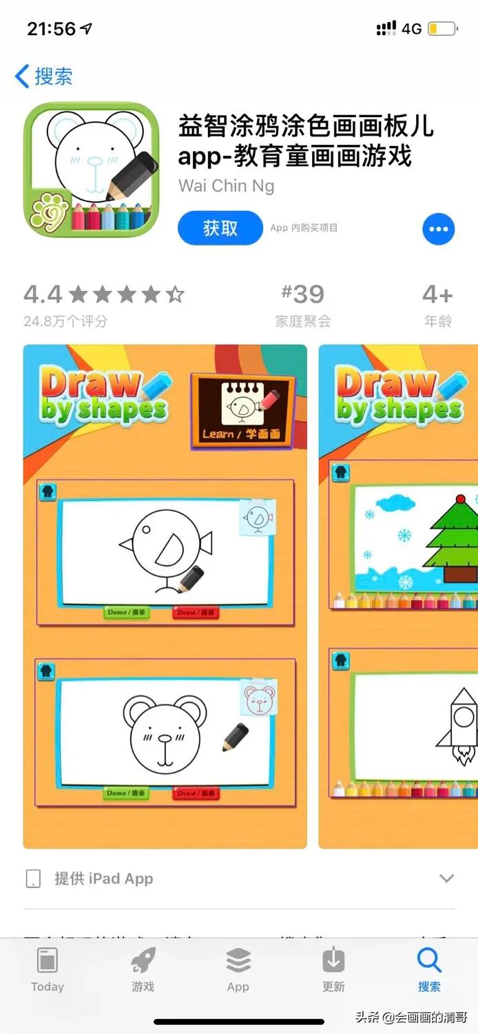 画风可爱,都是小动物,形式新颖用手机和纸、笔结合,引导孩子画画,不需要家长孩子自己就能完成绘画。