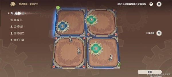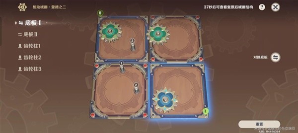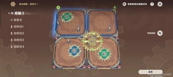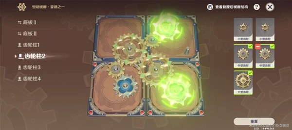 交换完之后,一次在1号柱放中齿轮,4号柱放大齿轮,2号柱放中齿轮,即可完成挑战。