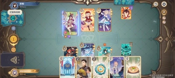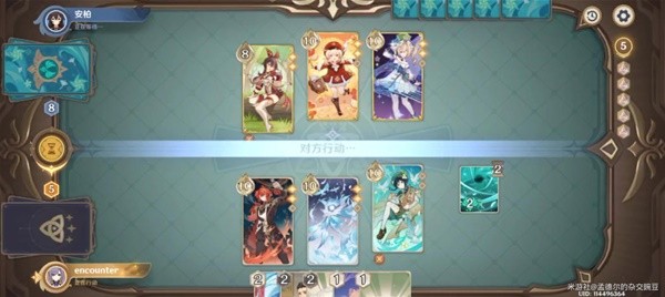 第二回合:纯水精灵用5费技能召唤两个召唤物,然后用大招(这回合纯水死了就直接切迪卢克)