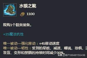 4、鞋子可以选择攻速鞋,如果对面法师多就要出水银鞋,出什么鞋就要看对面是什么阵容。