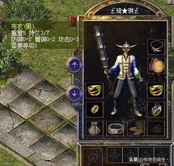 布衣应该是整个传奇中最普通的装备了,直接是开服就送的过度装。可是,即使是最最普通的布衣,也是有几率是出现小极品的,图中的这件衣服,加了3点攻击。如果有人拿着裁决配合这件衣服的话,我想这肯定是游戏中一道亮丽的风景线了~