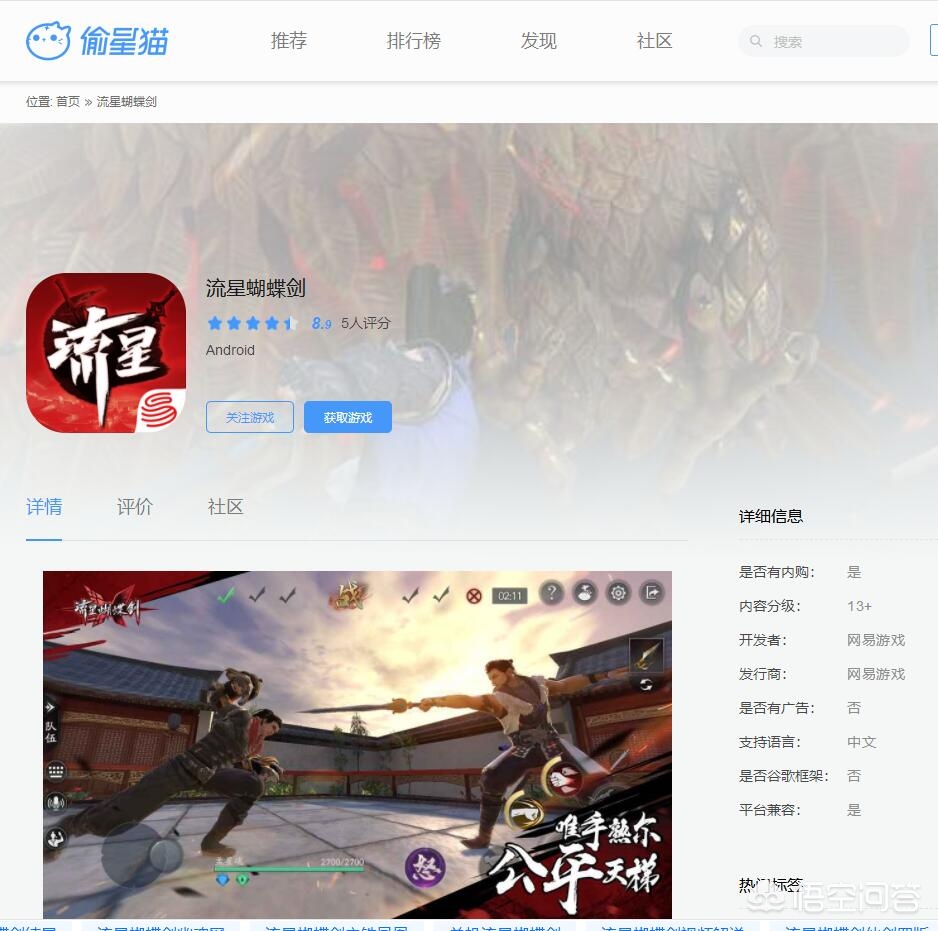 流星蝴蝶剑是一款角色扮演类的动作手游,游戏的画质很好,背景也很不错,里面的剧情也是刻画得比较接近原著,游戏人物不是很好看,楚留香的人物比较好看。游戏的缺点就是难度很大,我才升了几级就一直被野怪打死,如果不改的话这游戏是玩不下去的。不过这款游戏可玩性比较高,公测之后应该会好很多,现在只能在偷星猫上预约。