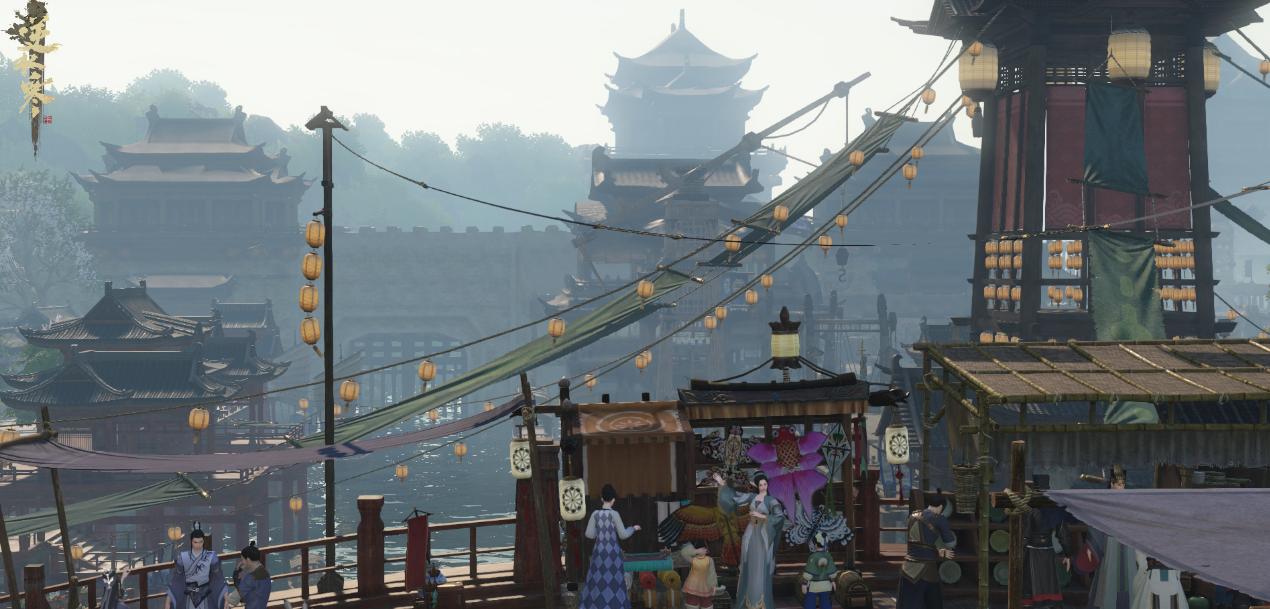 其次,是人物角色,包括NPC。NPC不是死板的存在,每个人都有自己的故事。而且,当你走到街边的小摊上,NPC会来端茶倒水。游戏角色的话,你拉近距离,可以看到根根分明的发丝,和现实无区别。最后就是地图,像汴京,就是复刻了千年前的《清明上河图》场景,桥上小贩的叫卖声,桥下船夫的划船场景,都能看到,见到。