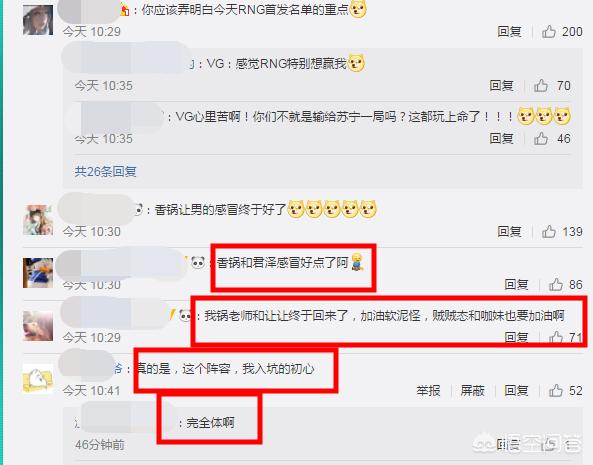 下面网友纷纷评论,这个阵容就是他们入坑的初心。很多网友也对VG表示同情,毕竟以VG现在的状态非完全体的RNG他们都很难打过。这个阵容也能看出RNG是一支非常成熟的战队,也看出了RNG对这场比赛的重视程度。