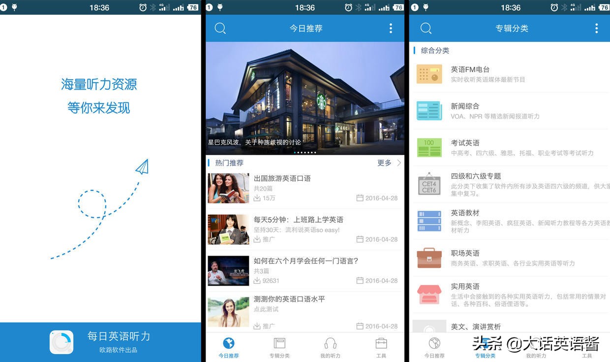 每日英语听力的内容很全面并且包含了各种考试,BBC、VOA、四六级在这上面都有,还有一些短文及实时娱乐新闻等,大多在5分钟以内,并且富有跟读键,重复键等功能,对于练习听力是很好的选择。跟它配套的欧路词典也相当好用,下面会说到。