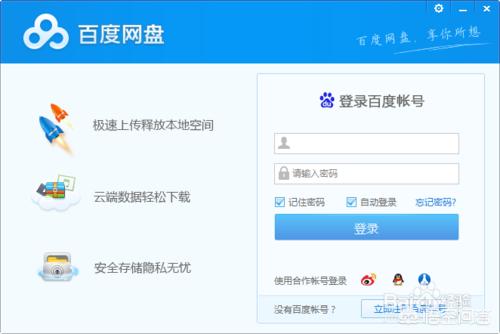 安装好了以后只要登录下自己的百度云帐号就可以了。主界面和百度云的界面区别不大。