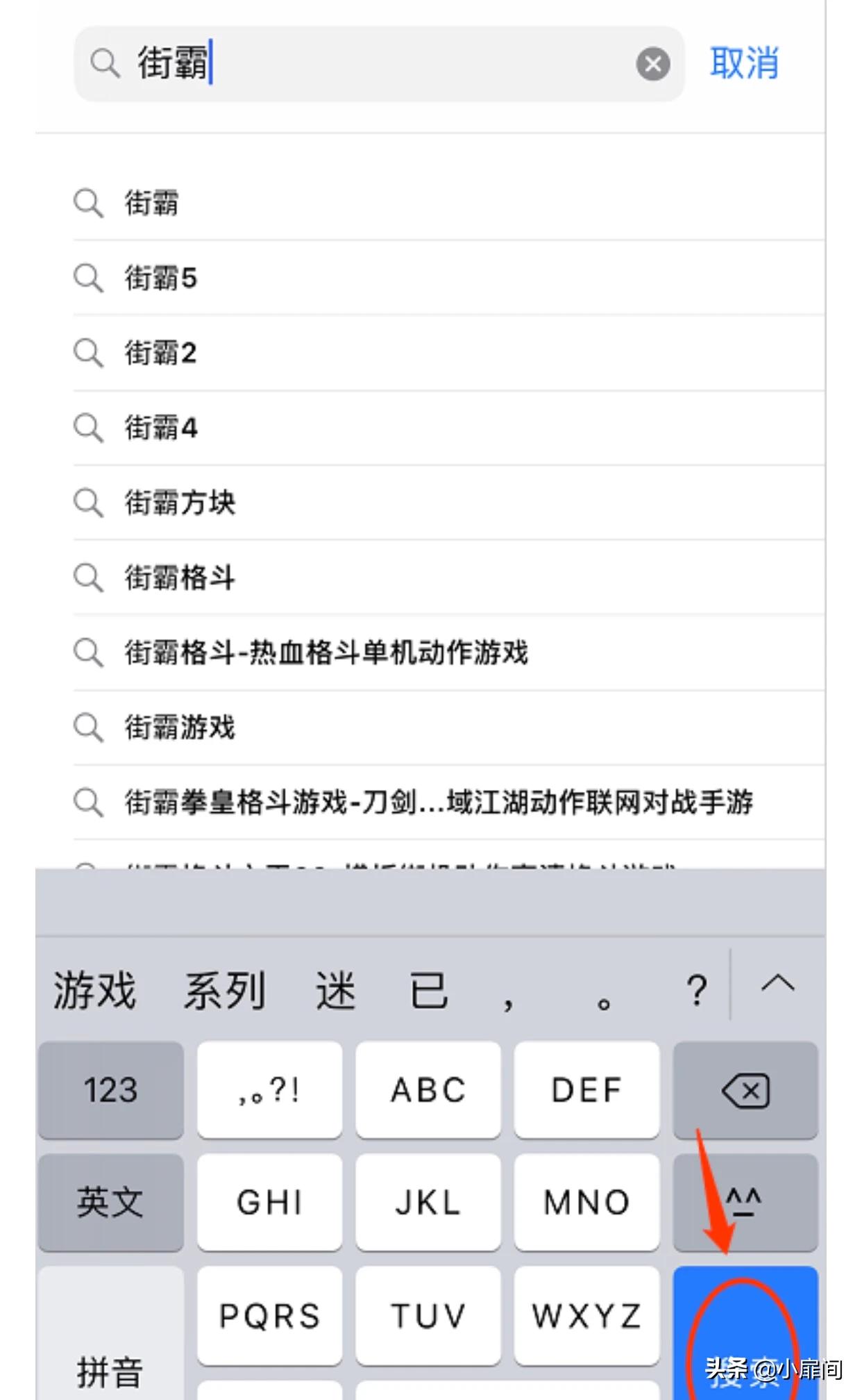 在商店的搜索框中搜索街霸,然后点击搜索。