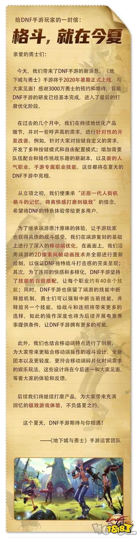 总而言之,DNF手游这次是真的要正式上线了,虽然还有半年的时间,不过至少给了玩家一个明确的答复。现在预约已经超过2000多万,希望腾讯不要再过度消费玩家的热情,更希望精力了5年的研发和测试,DNF手游能给我们一个惊喜。