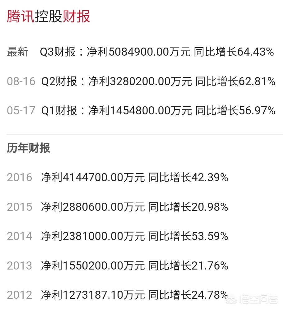 腾讯有多少钱呢?根据腾讯控股显示:2017年三季报净利5084900.00万元 同比增长64.43%,这到底是多少钱呢?简单来说就是508个亿!