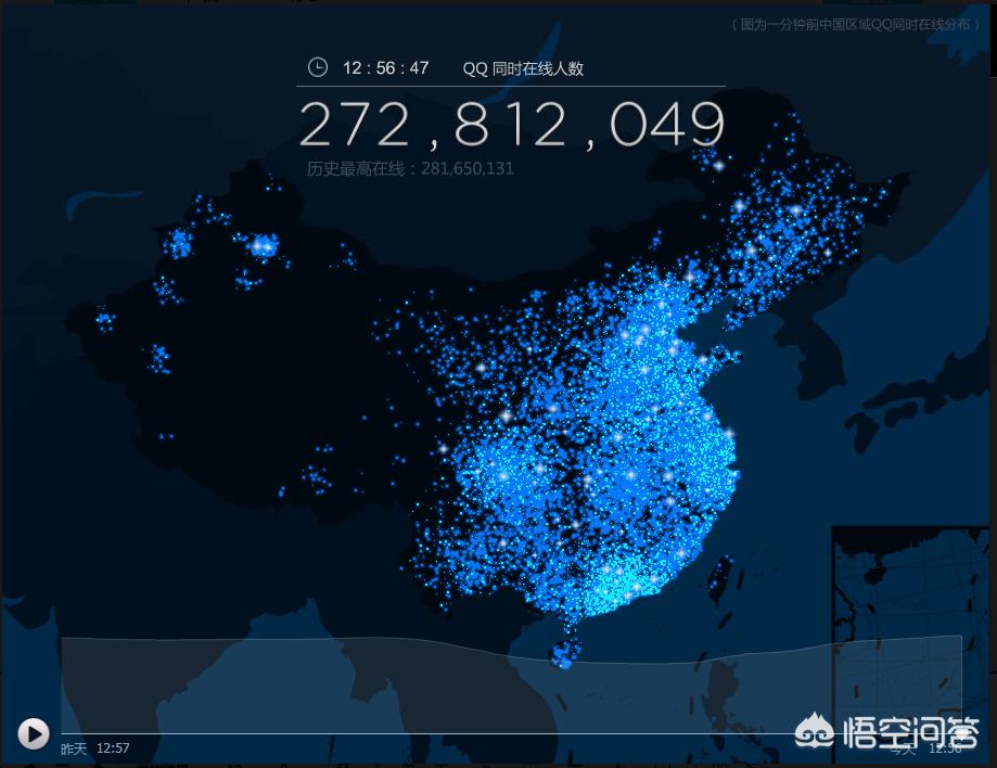 这是我几分钟前查到的,QQ在线的实时人数截图。
