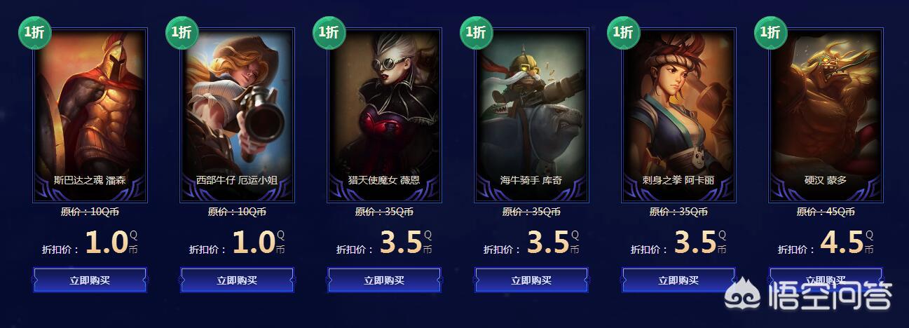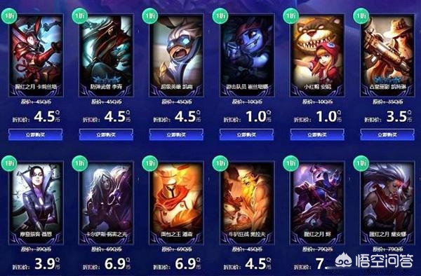 看看这都是什么,都是一些很少见的远古皮肤,而且大部分英雄我都有皮肤了,虽然只需1块钱,但依然提不起一丝兴趣。唯一让我有兴趣的就是库奇的海牛骑手,可惜这款皮肤我早就有了,至于其他皮肤,都不见得有原画好看呢,虽然钱不多,但真没觉得自己有多幸运,反而有点失落,好不容易抽到一折的机会,却给了一些无人问津的东西,失望。